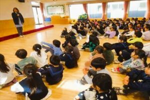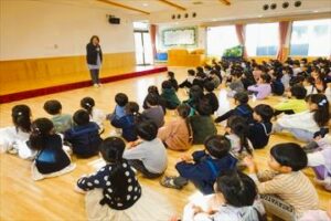 12月23日(火)に第2学期終業式を遊戯室で行いました。式は、元気な園歌の歌声でスタート。小沼園長は子どもたちに「休みの間、怪我や病気に気をつけ楽しい思い出をたくさん作りましょう。たくさん食べてたくさん寝て、また元気に三学期に会いましょう。」とお話ししました。子どもたちはみんな笑顔で第二学期終業式を終えることができました。