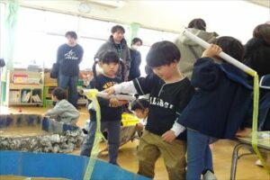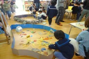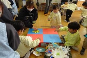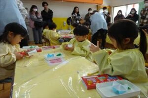 2月6日(金)に年少・年中組における保育参観を実施しました。多数の保護者の方に来園していただき、保育をご参観いただきました。年中組は、魚釣りゲーム作りやコマ製作などを楽しく行いました。大物を釣り上げると歓声が上がり、おおいに盛り上がりました。また、年少組は、紙コップを使ってコマの製作を頑張っていました。とても和やかで素敵な時間となりました。ご参観いただいた保護者の皆様、ありがとうございました。